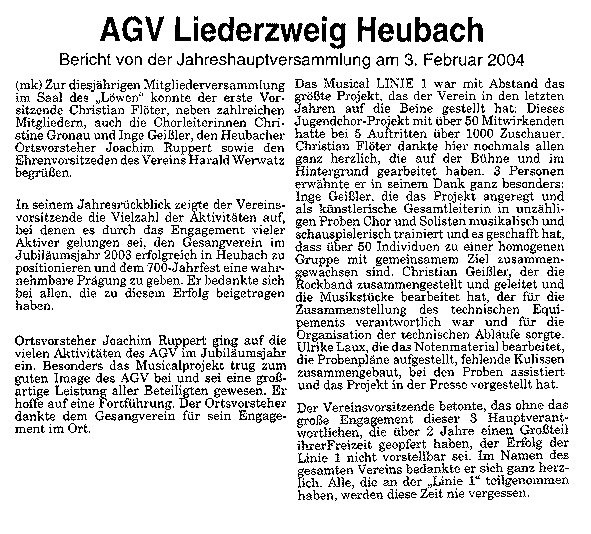 Jahreshauptversammlung des AGV Liederzweig (Odenwälder Bote vom 13.2.2004)