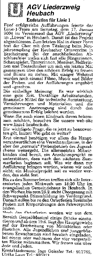 Endstation für "Linie 1" (Odenwälder Bote vom 20.1.2004)